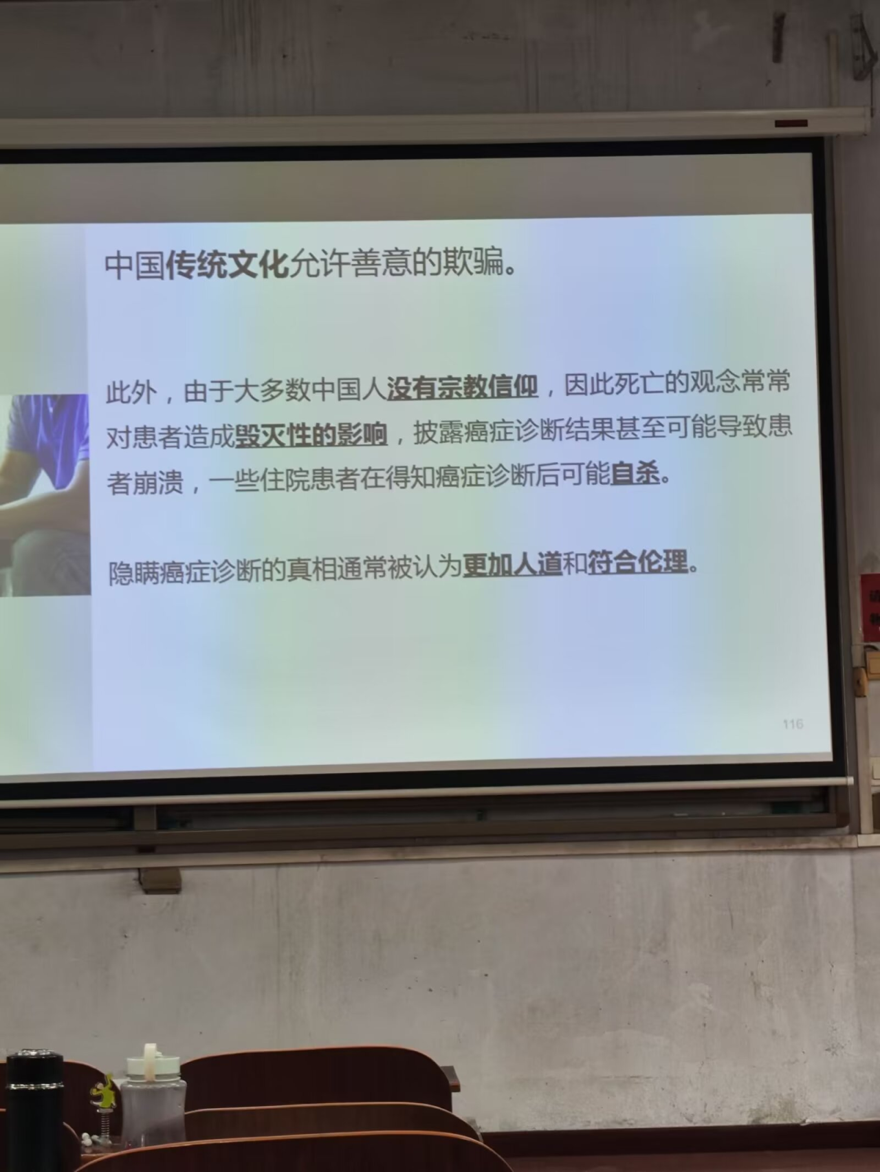 3.【中国的血缘羁绊】→与“先征求家属意见,从而让家属选择是否告知患者”的相关性。夺去了本人的自主权。