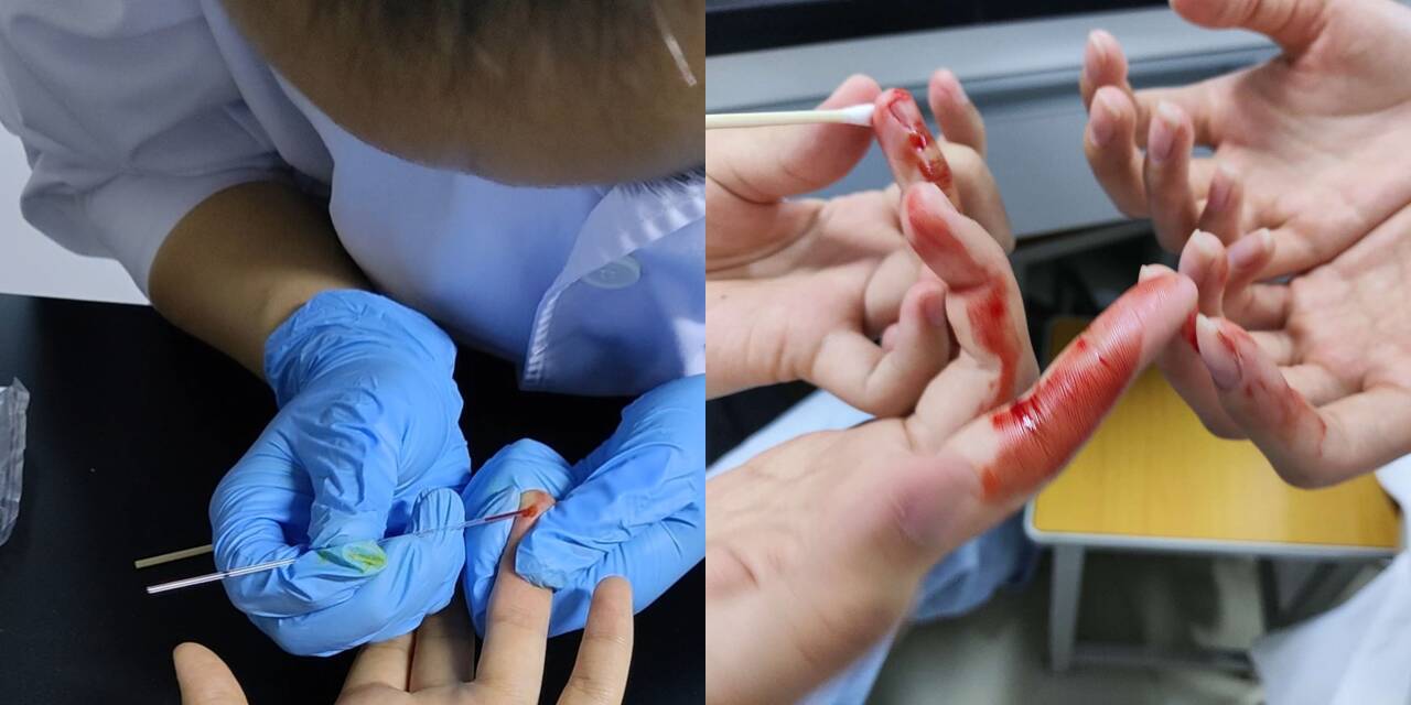 老师把采血管的刻度拿反了🌚,只得again。不过由于这次实验采血量比较大,一针直接扎的很深,还好没怎么被挤。